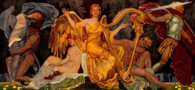 Σύνδεση με μυθολογικές ή αλληγορικές σκηνές (συχνό μοτίβο στη «Die Scholle»).